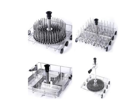 實驗室器皿需要根據(jù)不同結(jié)構(gòu)(燒杯、錐形瓶、容量瓶、樣品瓶、采樣瓶、試管、移液管、色譜進樣小瓶、頂空進樣瓶等)尺寸和容量(2ml、10ml、100ml、......)等以及需要清洗的器皿數(shù)量進行分類。根據(jù)這些信息可以選擇我們家族合適的實驗室全自動洗瓶機及定制清洗籃架來滿足需要。